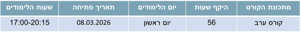 • הקורס מוכר לגמול השתלמות, תעודה לגמול השתלמות תינתן בכפוף לכללי ועדות הגמול.