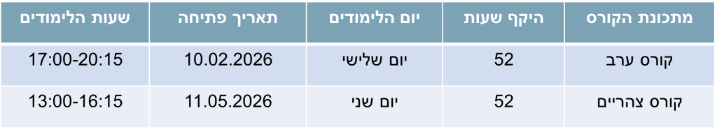 - הקורס מתקיים בשני מסלולים – מסלול בוקר ומסלול ערב.