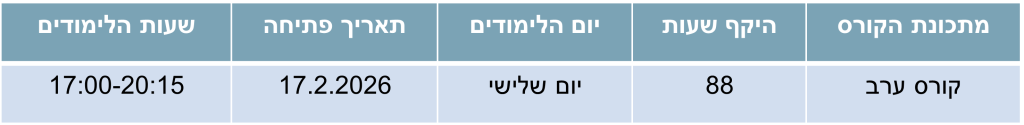 - לימודי ערב, יום בשבוע – מותאם לבעלי קריירה