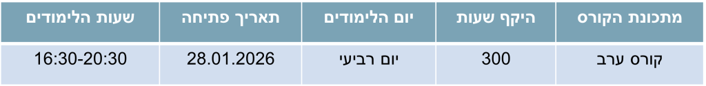 - הקורס מתקיים בשיתוף המחלקה לעבודה סוציאלית באוניברסיטת בן-גוריון בנגב.